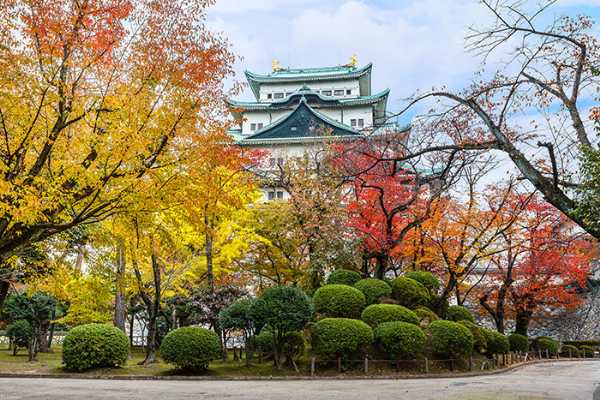 A área mais imponente da cidade é o Castelo de Nagoya, que foi construído sob as ordens do senhor feudal Tokugawa Ieyasu. A obra ficou pronta em 1612, e marca o início do crescimento de Nagoya. A marca registrada do castelo é a dupla de kinshachi (golfinhos dourados), fincada no topo da torre principal.